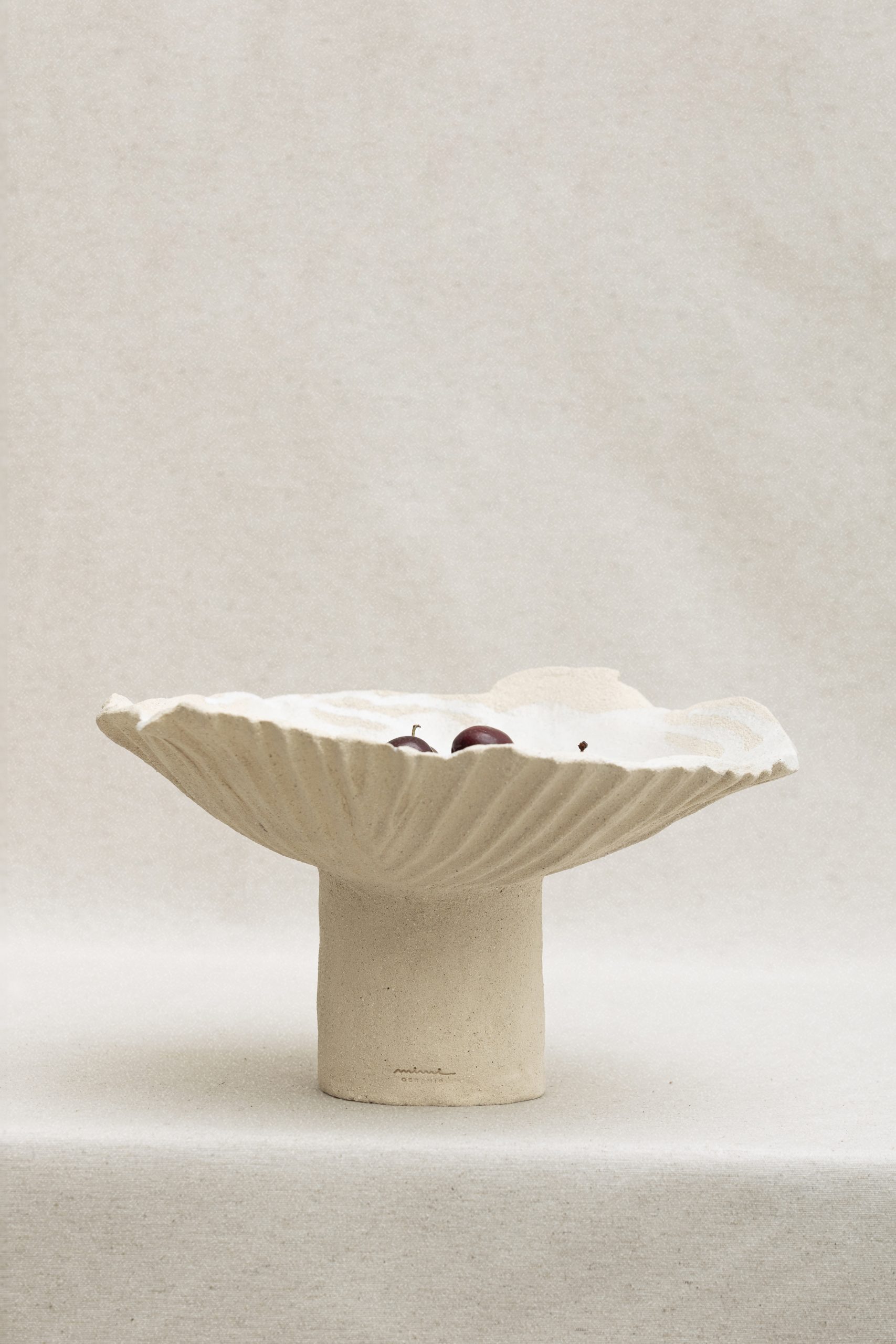 Pieza única, creada a mano con barro de alta temperatura y chamota fina. Esmaltado internamente para poder utilizar de frutero y poner alimento dentro